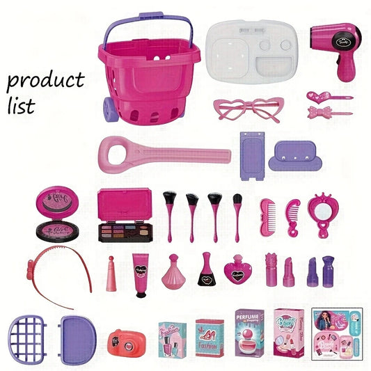 36 luxury fashion makeup and styling sets for kids with luggage, hairdryer, brushes, lipstick, mirror and bobby pins
