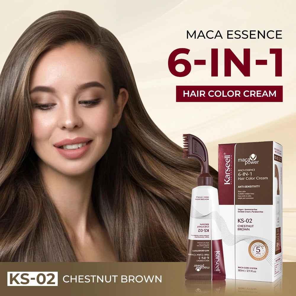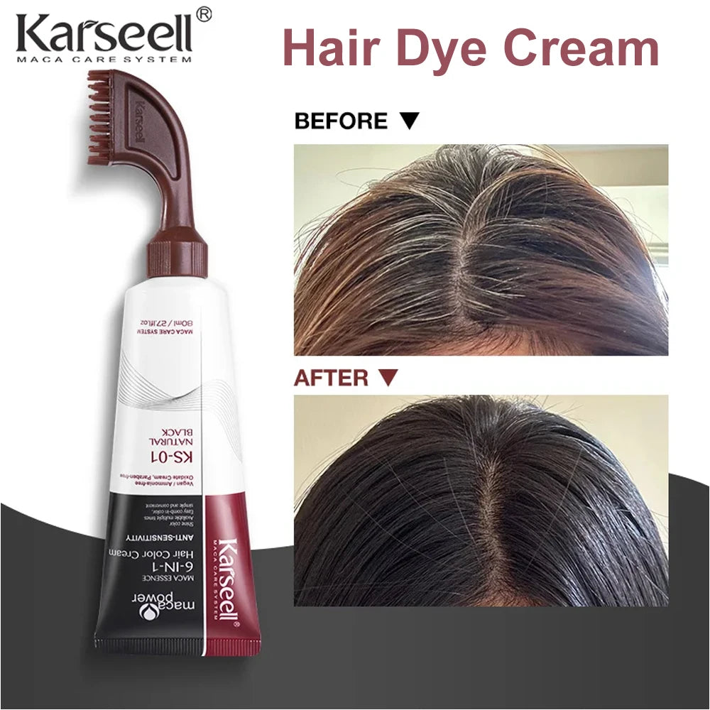 Karseell 6-IN-1 White Hair Dye Cream – Natural Black & Brown Hair Color for Men & Women, Easy Comb-In