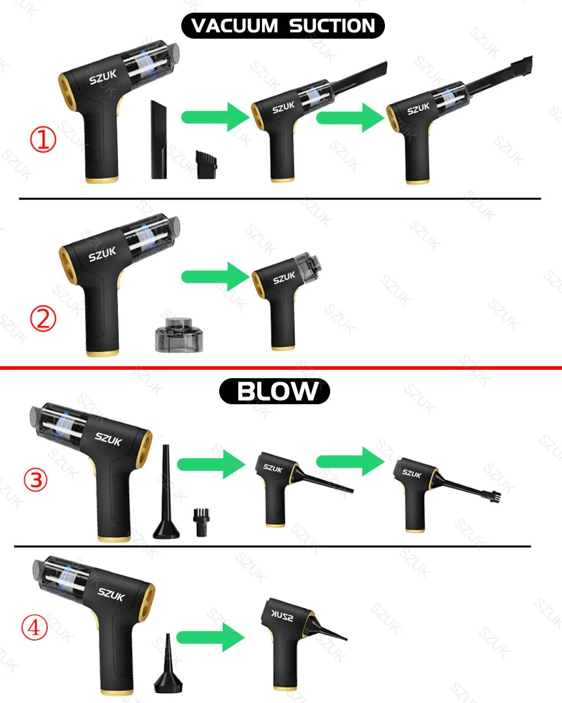 SZUK 98000PA Mini Car Vacuum Cleaner Powerful Cleaning Machine Strong Suction Handheld for Car Home Portable Wireless Cleaner